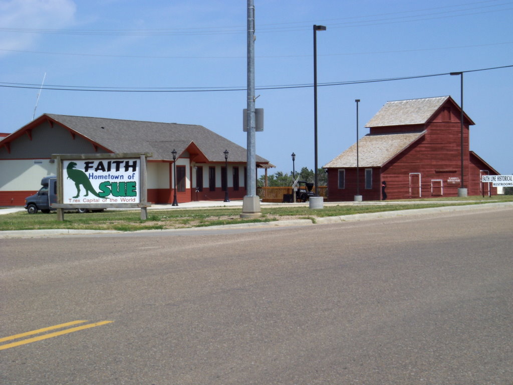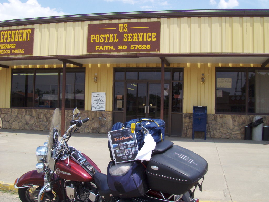 not easy to do when these towns are so small and so sparse. There were more than a few times as I traveled on for what seemed like eternity through farm land that looked the same for mile after mile that I wondered whether the woman who advised me was secretly laughing. One of the towns I rode through is Faith, South Dakota. If the name does not ring a bell, this is where the most complete skeleton of a Tyrannosaurus Rex, Sue, was found. It turns out that Faith has the cheapest gas so far this trip. Also, look in the photo. When was the last time you saw filling station gasoline pumps with the mechanical numbers that rotate around? Along 212, I found the county of Ziebach. A "Z" county. Do you realize how rare those are? Well, they are rare. So I stopped by the road and took a photo of the county limits sign. I never did find any official building for Ziebach. By the way, but for a missing "w" and a "k" rather than an "h", this county could be really big in the flat bread industry. |