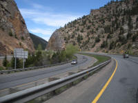 The canyon is so narrow for a few miles that they built the Interstate one on top of the other.