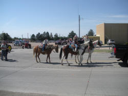 tractors, pickups, horses, mules, people walking, riding bicycles, and