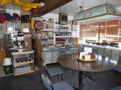 After settling into our motel, we headed out to dinner Carol wanted to try a place called Ye Olde Castle Family Restaurant based on Yelp reviews The owners are an older couple who are tired of running the restaurant They called upon a friend, Ken, to manage the place. What Ken found was a wonderous collection of toys and memorabilia For example, there were about 30 bicycles, each in perfect shape several as pairs of identical his and hers types Going to Burns and not stopping in here certainly is missing a good thing. And, the food, good old home cooking is very good |