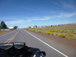 Burns (A) there were a few rich farmlands but mostly high desert Mile and miles of high desert. How high? Up to 4,700 feet, no lower than 3,500 feet. At some points side roads went off to ranches, at other points, seemingly nowhere |