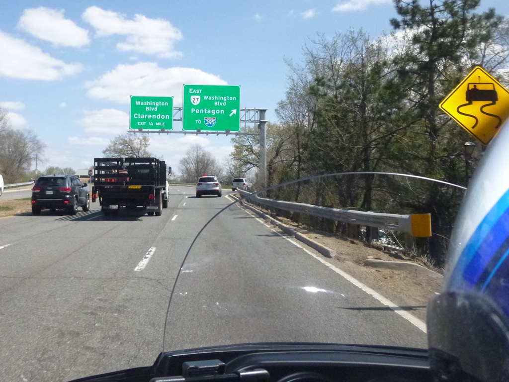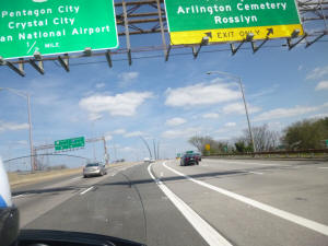 From Falls Church to Maryland, the quickest way might be to swing around the beltline, but going through the district is more picturesque There were three tall pointy things along the way I had never seen them before, I will have to look them up |