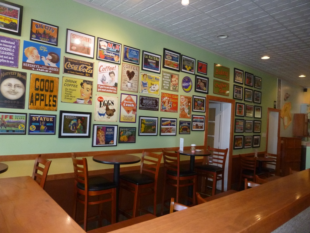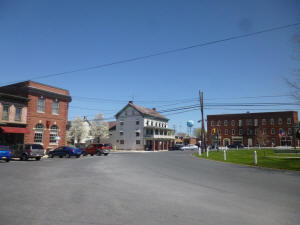 Our route took us through a lot of little towns. Stopped in one, New Oxford,for a bite in a little cafe On the side walls there were many tin plaques and framed little posters Many of the frames held fruit-box end labels from California The center of New Oxford is a round-about. Two highways converge. New Oxford has several buildings from the 1700's. Seems strange now to call it "new". |