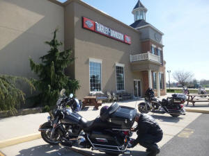 M & S Harley-Davidson So much history around in Pennsylvania. This is the 150th year anniversary of the burning of Chambersburg during the Civil War. They have a commemorative t-shirt for the event and now I do too. The bike is a little squirrelly sometimes and I had been wondering if the tire pressures were right Harley dealers take special care of bikers who are traveling. They checked the tires and I also had them pump up the air shocks. It seemed to ride better after that. |
