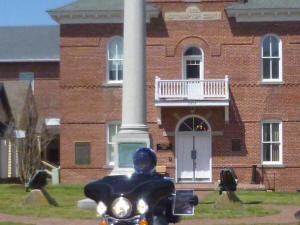 Eastville Courthouse Buildings, dating from the 1730's We took a photo for an "E" county letter. A fellow came out of the building and started to armor up to mount on his Honda Goldwing when he asked if we would like him to take a photo of both of us |