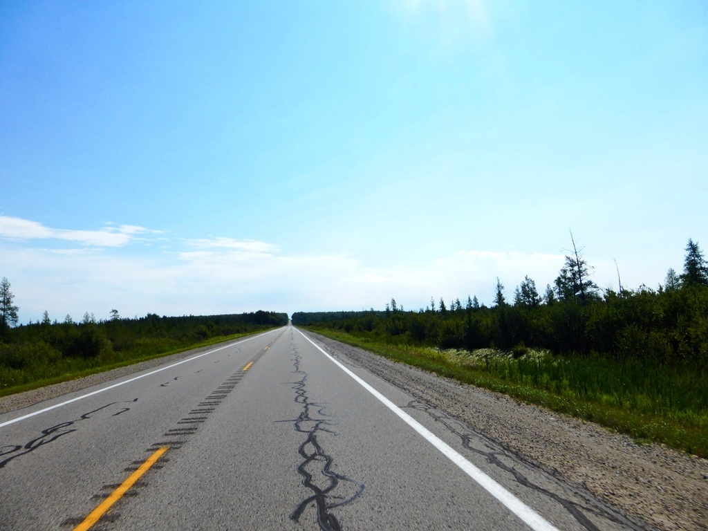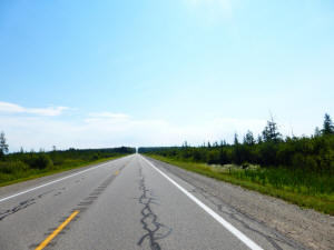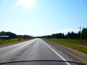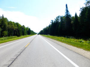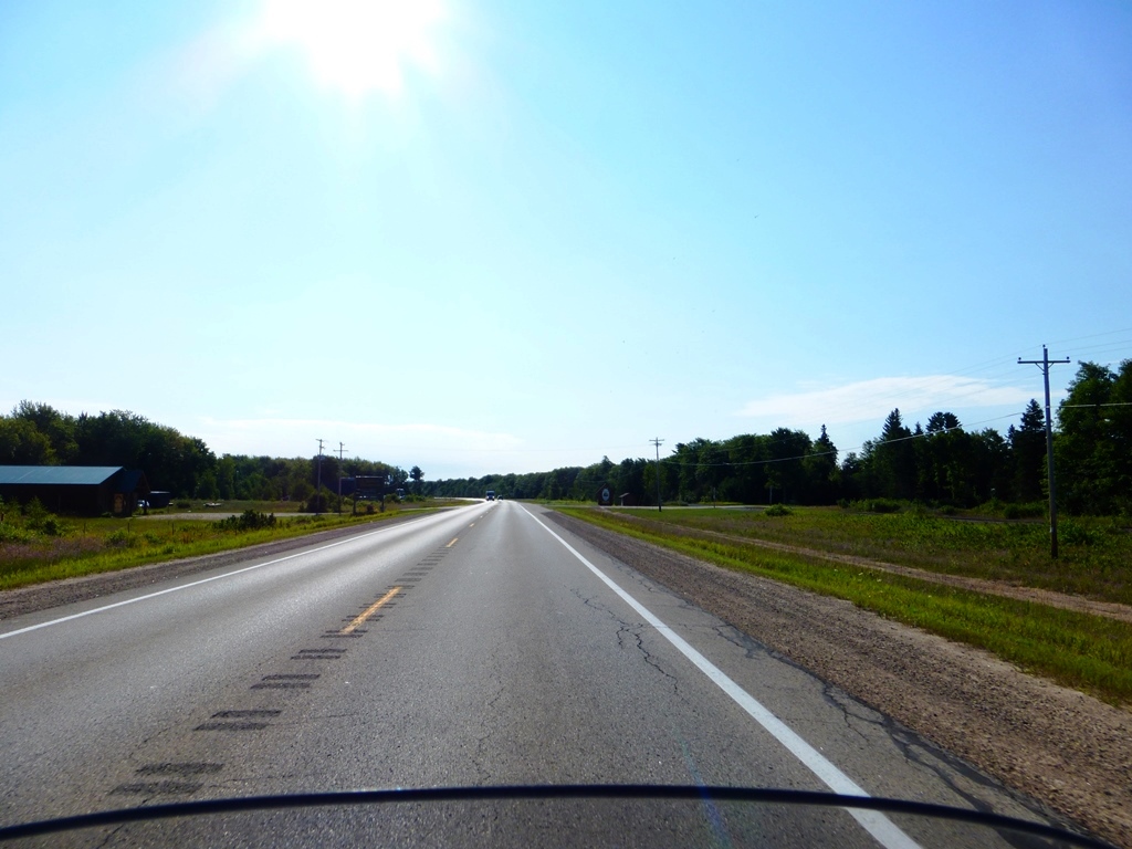 The weather was very nice, a little cool, but clear and no wind The traffic was extremely light When there were more than 4 cars in sight counting both directions, it felt like a traffic jam during rush hour Up 'til the last 20-30 miles, the road was very flat I was excited to see some rolling hills ahead in the cut through the trees |