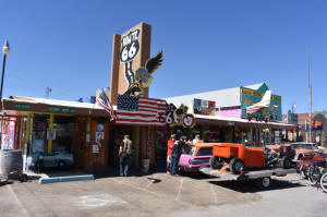 Sometimes you just get lucky... I was planning on stopping just for fun in Seligman a Route-66 tourism mecca To my surprise, they were having a huge auto show today Cars of all descriptions are parked around town or are slowly driving down the main drag I took so many photos of the cars and people that I added an extra web page just for those. Click Here for that page |