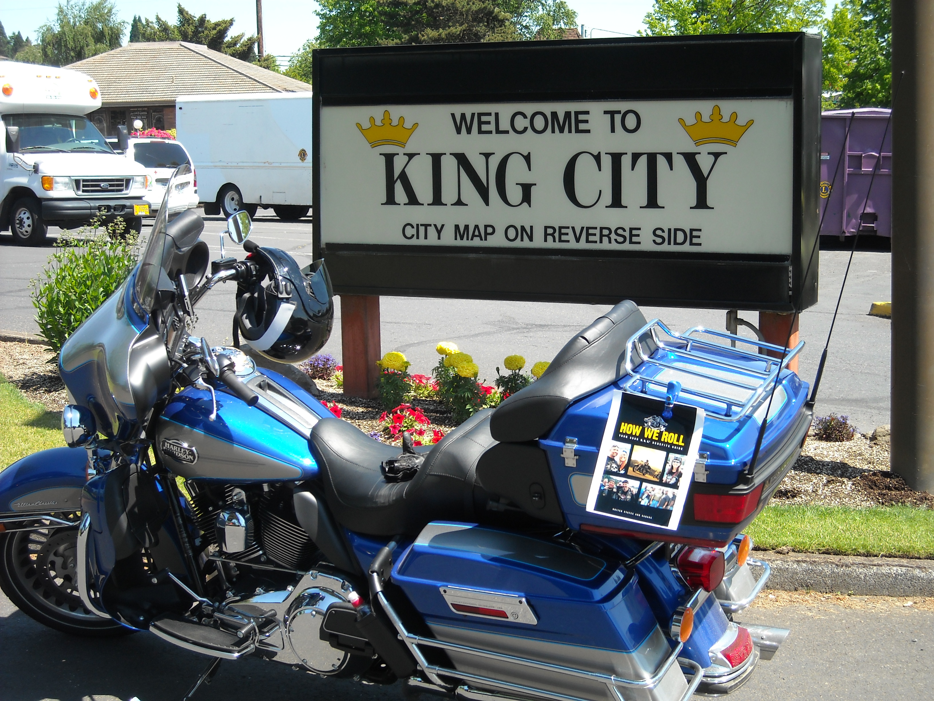 In each photo, you must have your bike, the sign and a current year issue of the HOG magazine.