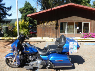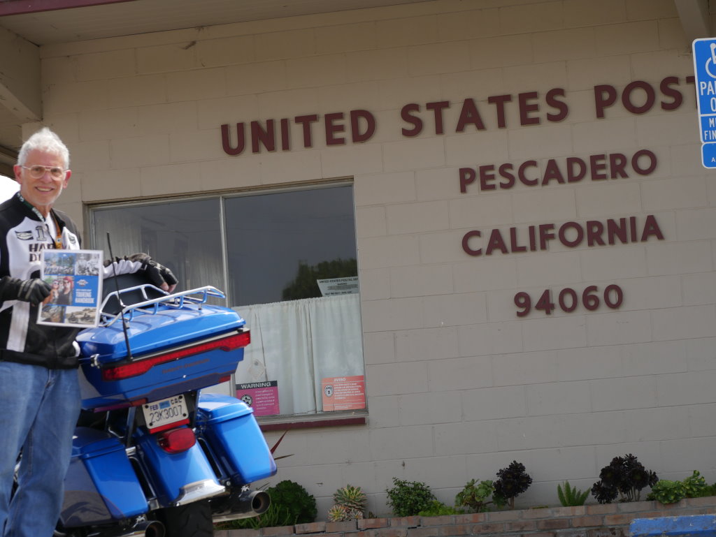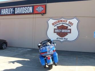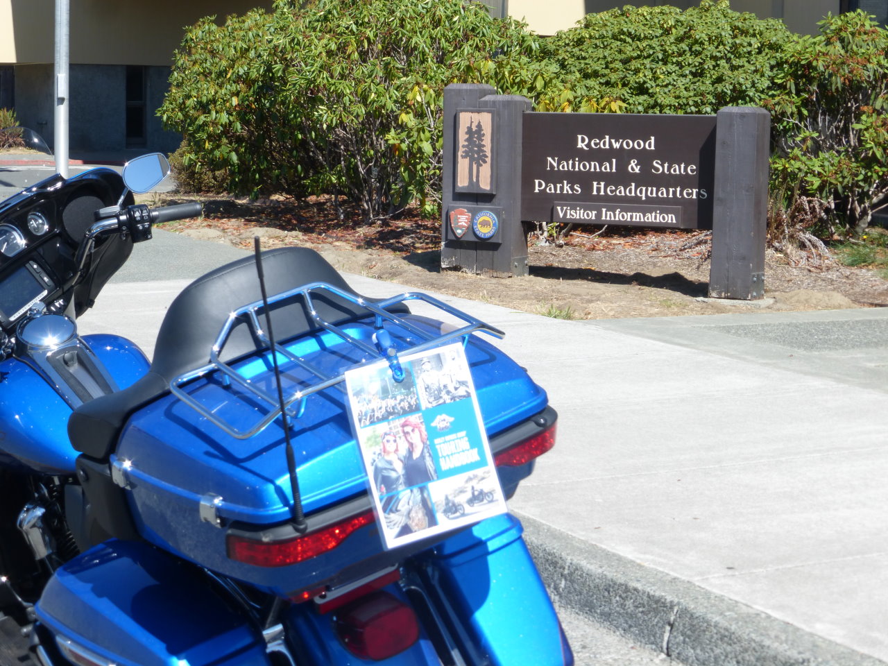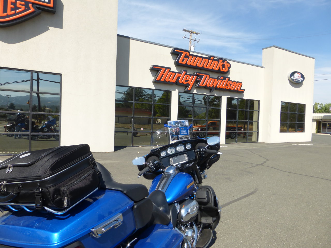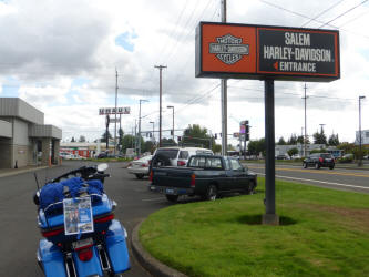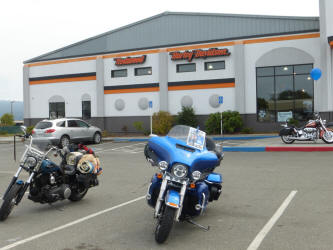 (HOG) sponsors an activity where members can win prizes, the ABC's of Touring The idea is to win points by riding your bike to far off places. Proof of the visits is in the form of a photo of you Harley in front of an official sign. The same photo can be used for more than one category but I try not to do so. Likewise, a HD dealer can also garner credit for its city, state or province. In each photo you must show your bike, the sign and a current year issue of a HOG publication. In at least five of the photos I must also include myself. These photos must be posted on the HOG members site for points |