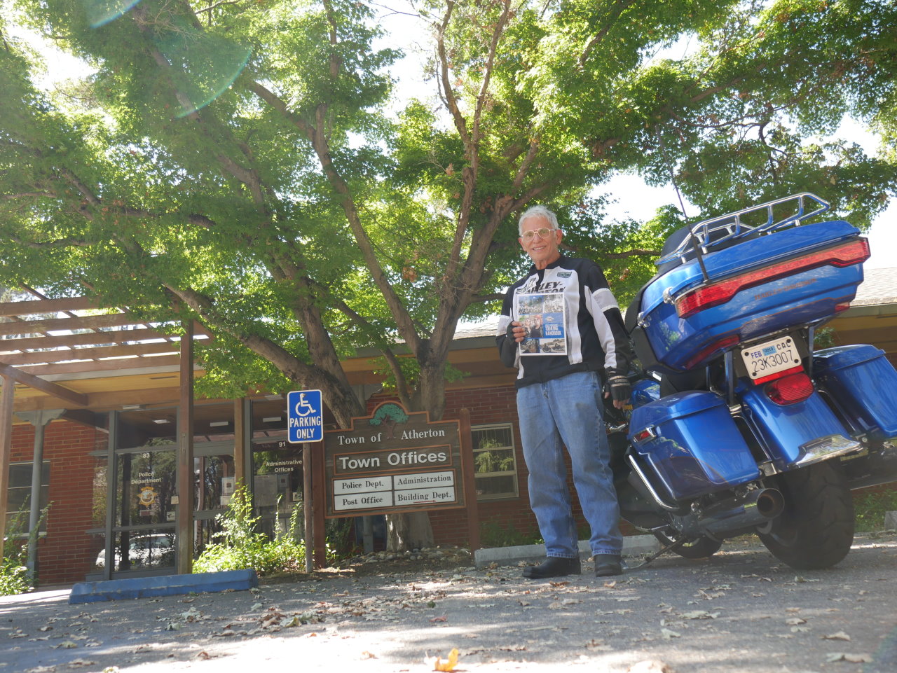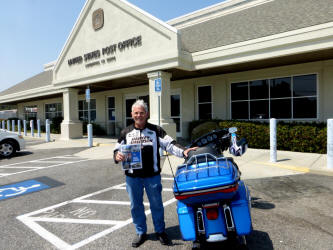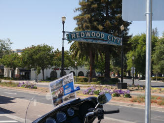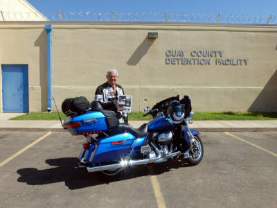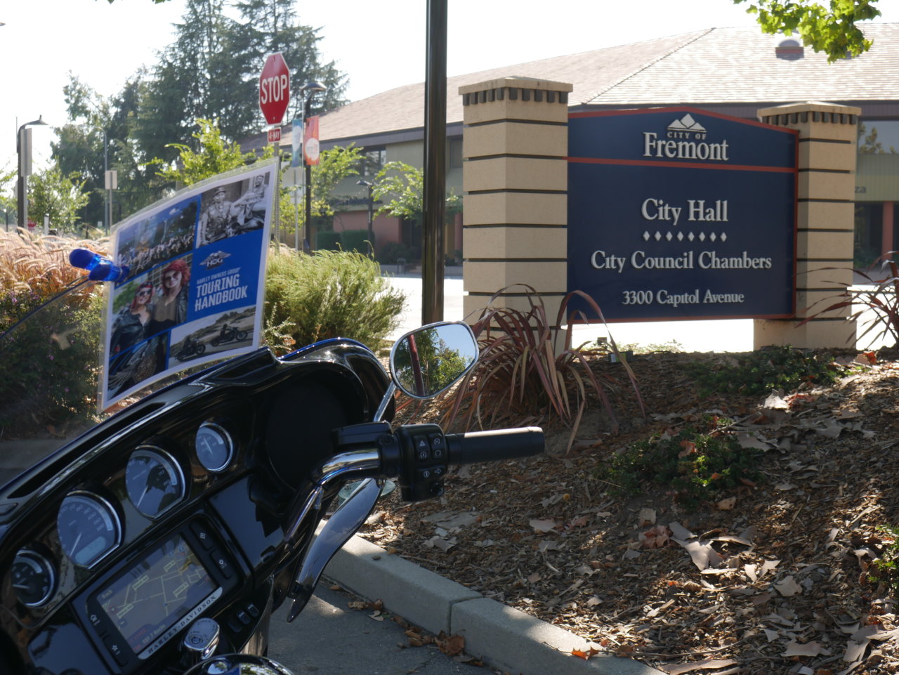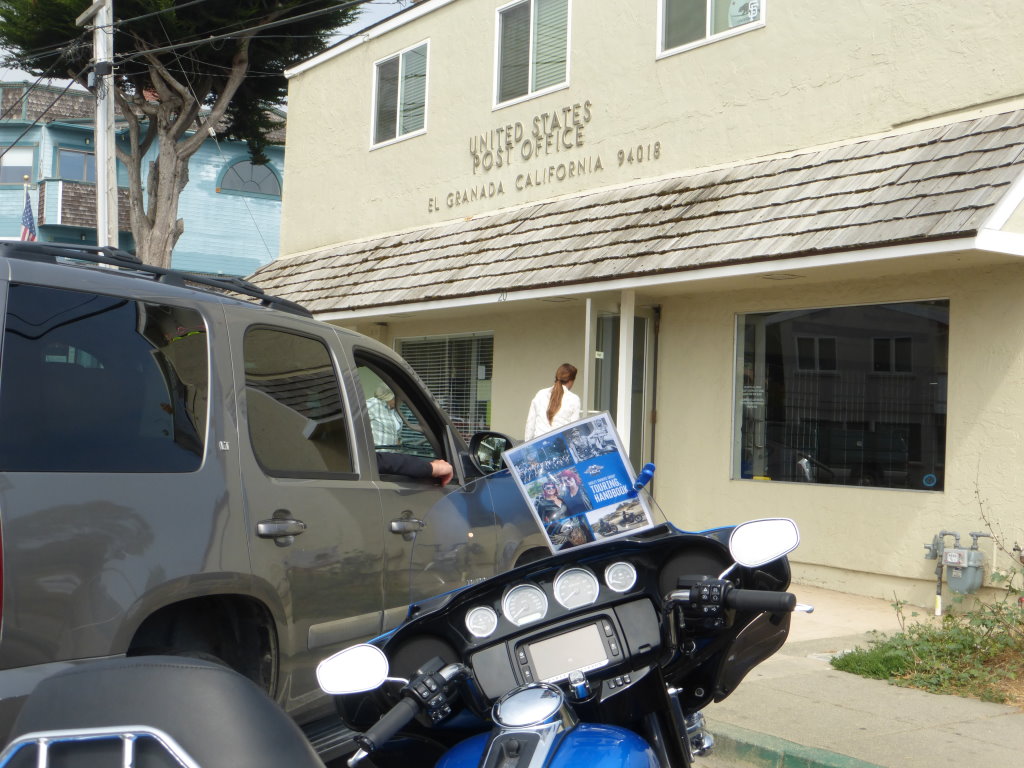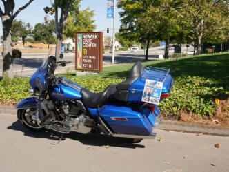 (HOG) sponsors an activity where members can win prizes, the ABC's of Touring The idea is to win points by riding your bike to far off places. Proof of the visits is in the form of a photo of you Harley in front of an official sign. The same photo can be used for more than one category but I try not to do so. Likewise, a HD dealer can also garner credit for its city, state or province. In each photo you must show your bike, the sign and a current year issue of a HOG publication. In at least five of the photos I must also include myself. These photos must be posted on the HOG members site for points |