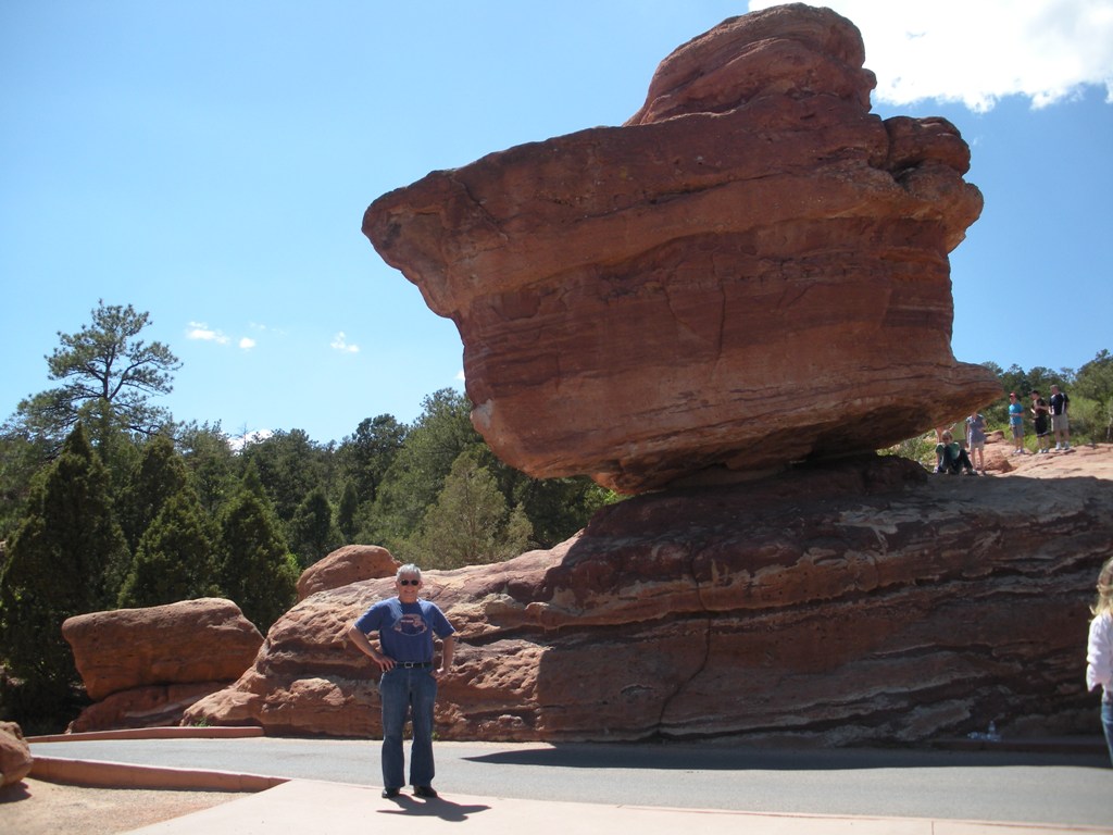 On the south side of Colorado Springs is a park, Garden of the Gods In this park is a geological feature of a balancing rock. My mother's father and two brothers visited balancing rock in 1918. We have a photo of them with the mule they rode in on. My sister and nieces visited the same rock a few years ago. So, naturally, I had to stop by when in the general area. There are people constantly teeming all over the place. Most want to have a photo of them "balancing" the rock.