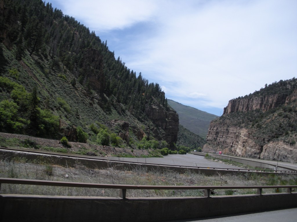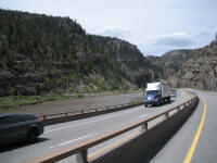 The canyon is so narrow for a few miles that they built the Interstate one on top of the other.