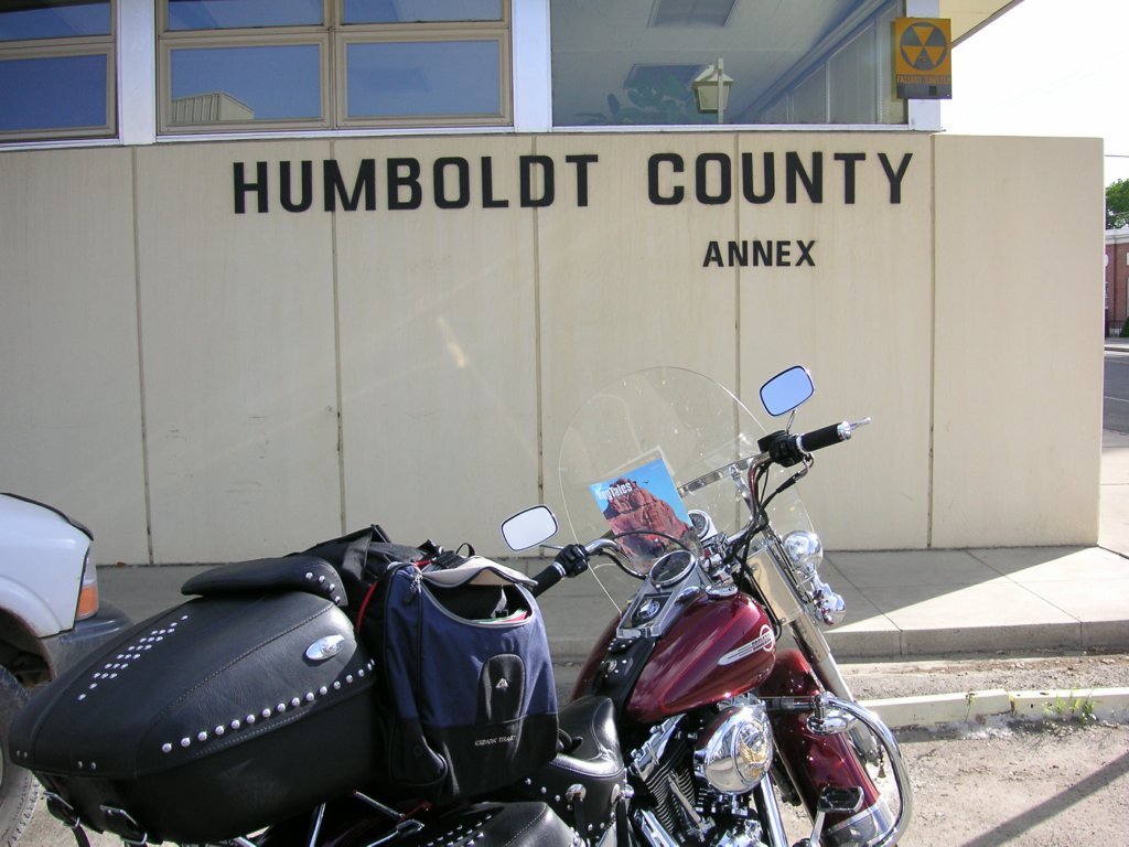 Humboldt County, Nevada An "H" for my counties, and a neater "W" for cities. Rode around town until I found the Humboldt County Courthouse and city buildings. This is where I thought I might spend the night, but moved on. Time: 5:29, Trip 73.7 |