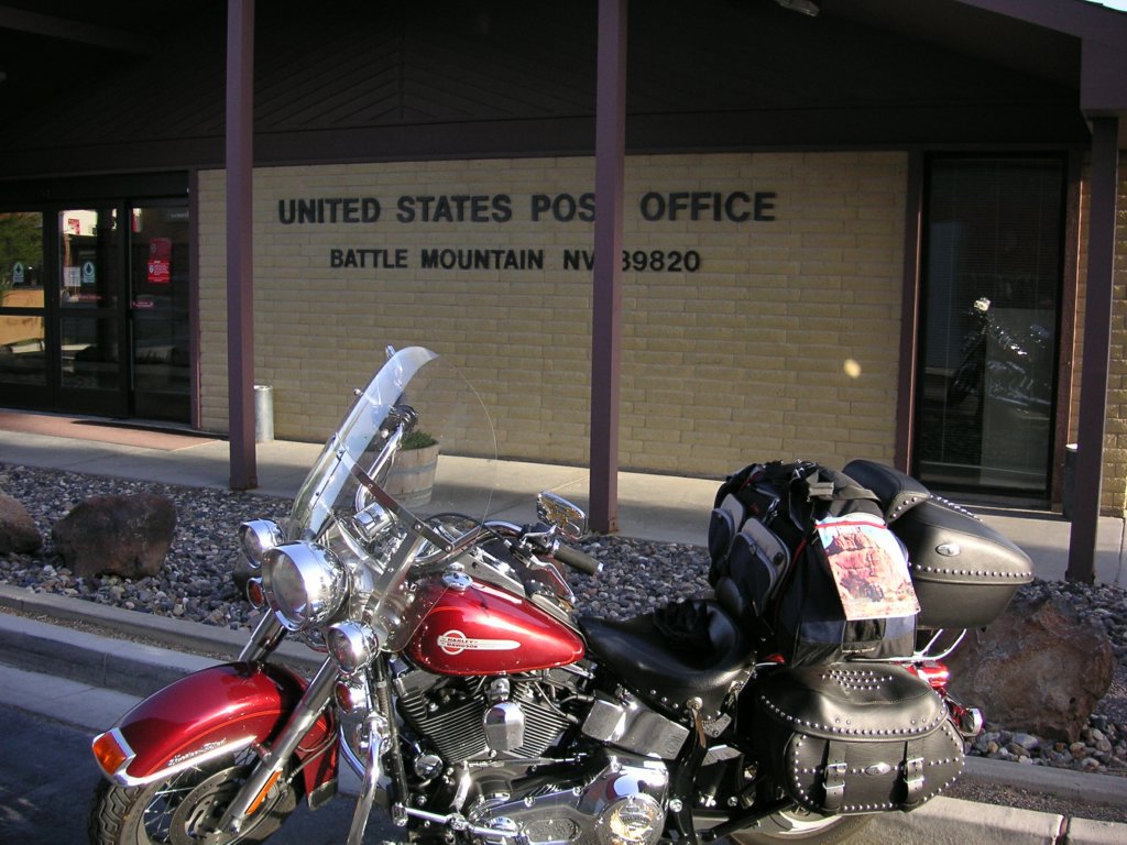 | Continuing on Hwy-80, there is a lot more of nothing than I had figured. All the little named dots on the map actually consist of nothing more than "no services" off-ramps to nowhere. I was getting dangerously low on gas and I was picturing being stranded in the middle of nowhere with a thirsty bike. I usually refuel at 165-175 miles, but this time, somehow, Lola was extremely good to me and just kept keeping on until I got to a town named Lovelock at 195.9 miles. Stopped at the Safeway for a couple oranges and a