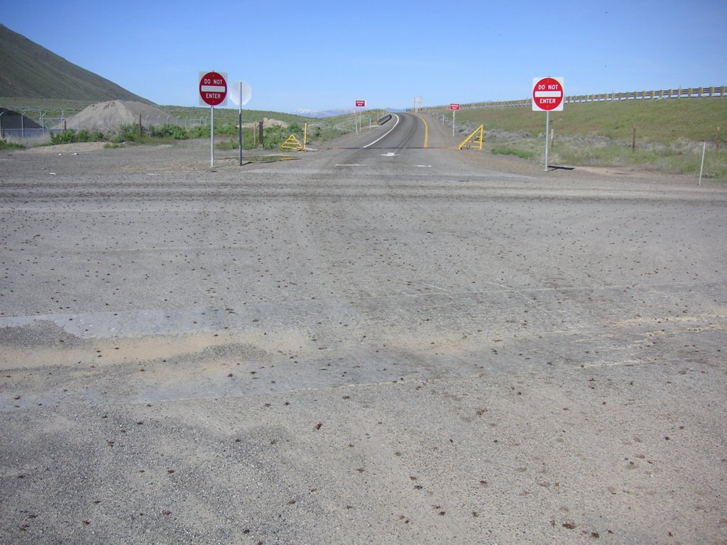 nothing but salt flats as far as you can see. And this road is STRAIGHT! Not a bit of a curve for 50 miles. There's the cut-off for Bonneville Salt Flats, Craig Breedlove and all that. |