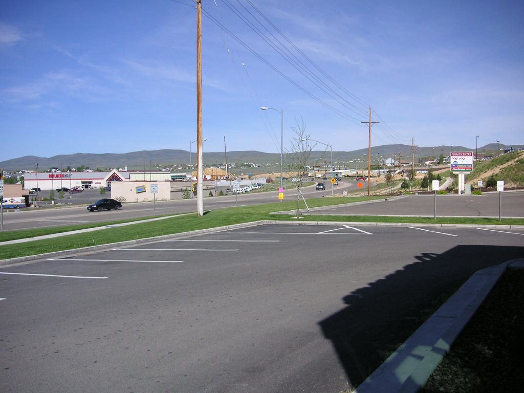 West Wendover, Nevada and Wendover, Utah. Casinos on one side of the line, their parking lots on the other.