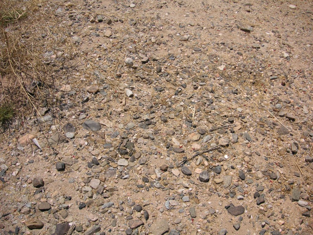 | It's really hot! Don't want to get too tired. I've got quite a ways to go on this road. The ground around here is rough gravel. Stopped for 5 minutes at a rest stop. Time: 1:45/2:45, Trip 30.3 |