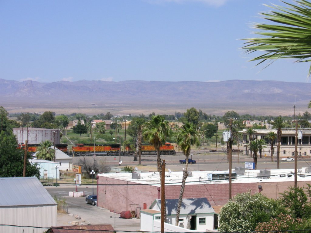 Kingman Trains all around with tracks adjacent in the rear. BNSF mainly. My