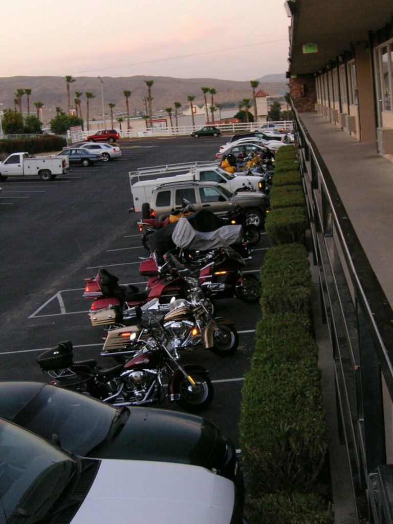 Barstow, I settled for the Quality Inn. It's kind of raunchy. Old, musty. With the discount coupon from the McD's coupon book it was $49. That's even cheaper than the AAA or AARP discount prices. There were about 42 American Motorcycle Association (AMA)