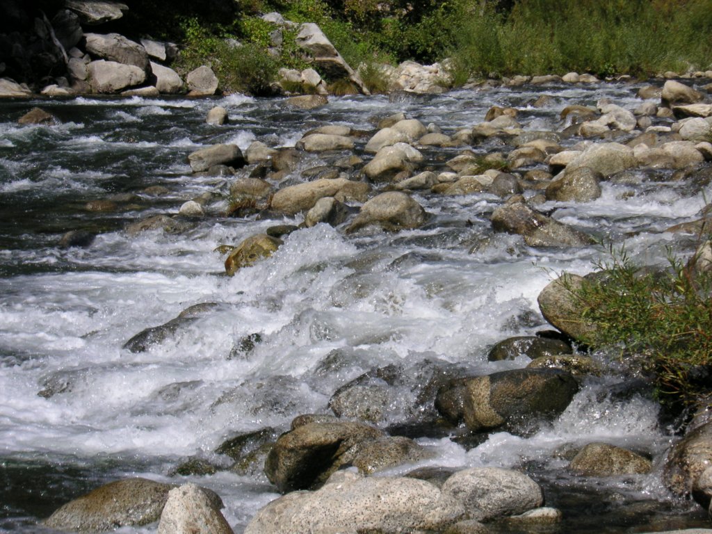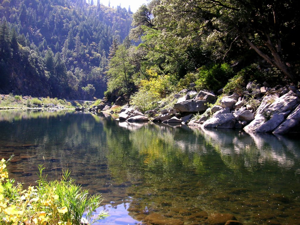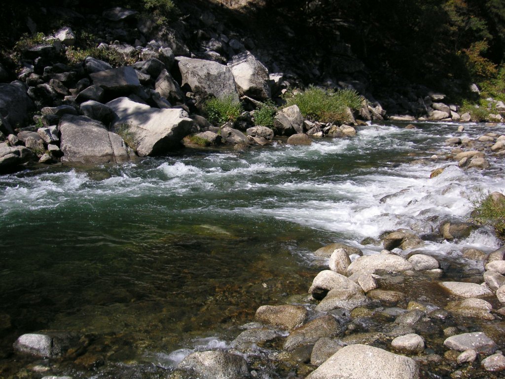 | Stopped at a "Shady Rest Area" 58.8 / 27,897 / 1:05 to 1:25 Hiked down on a rocky river bank. Reminds me of the river beaches we used to picnic in Humboldt County |