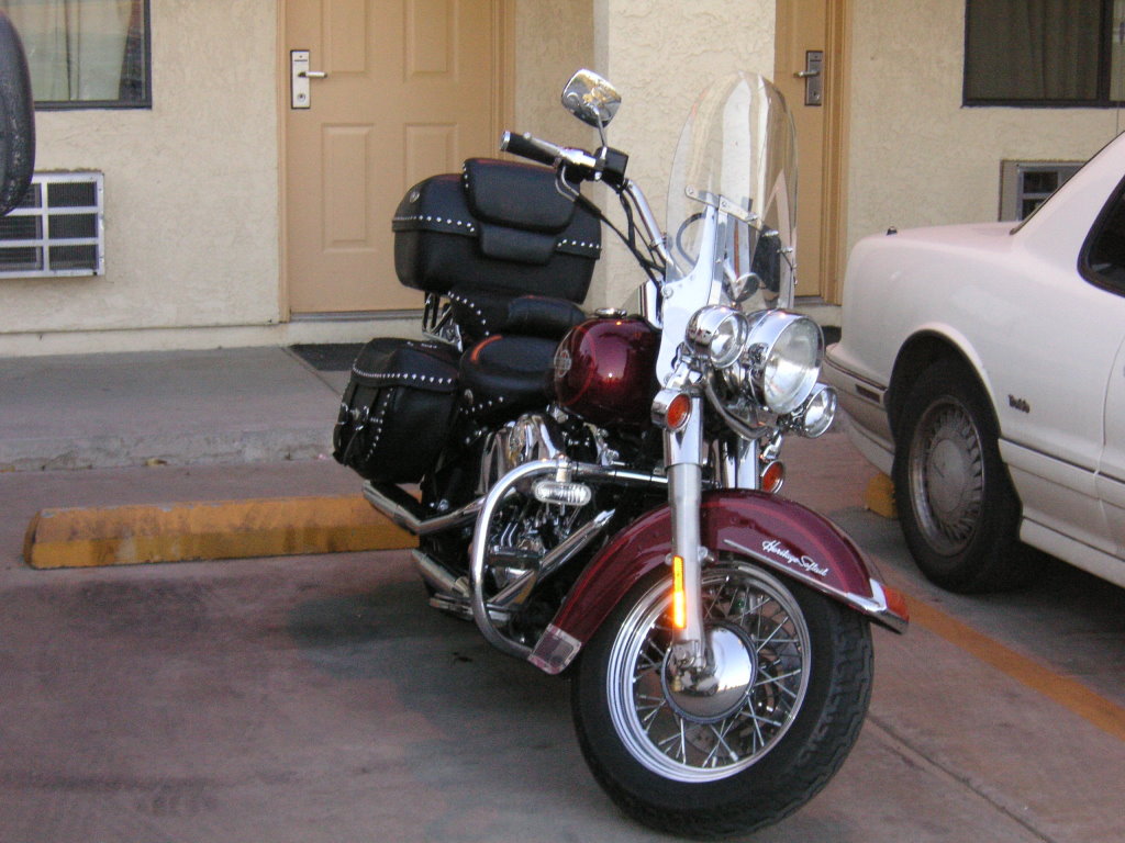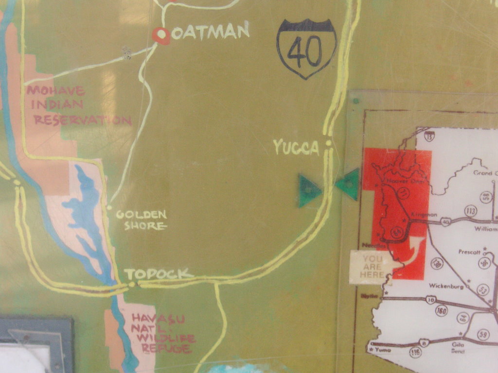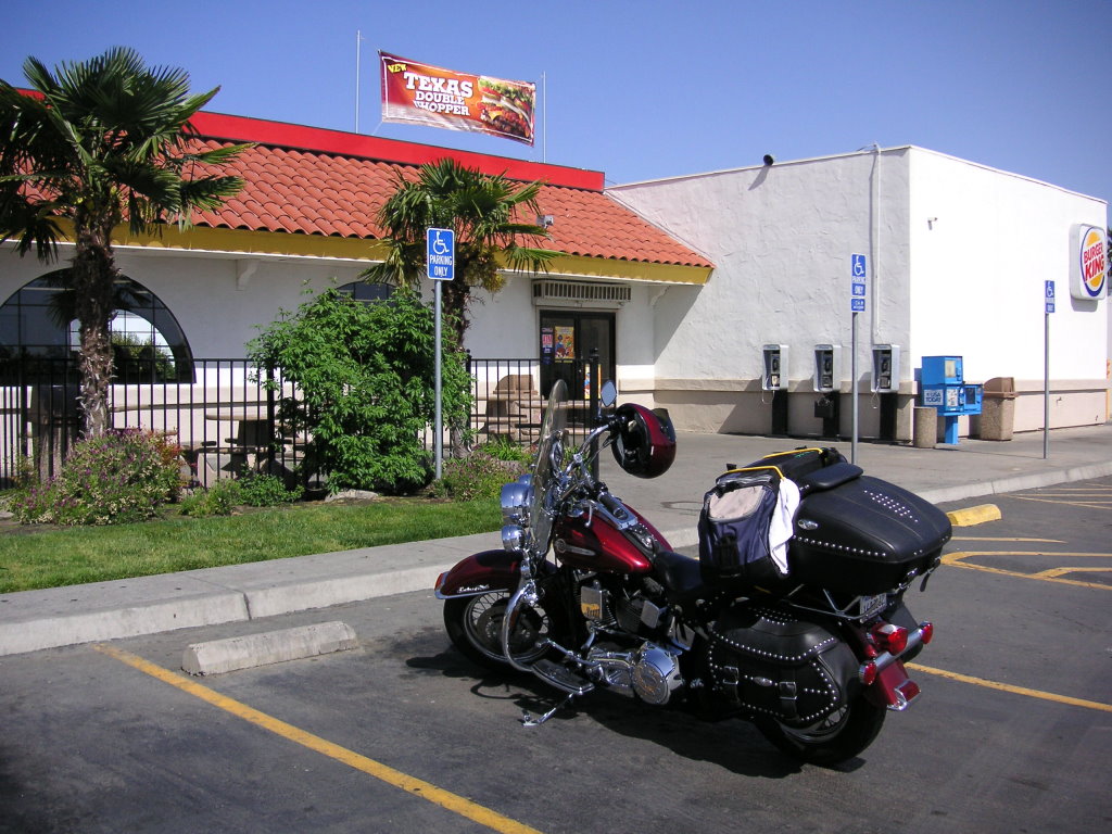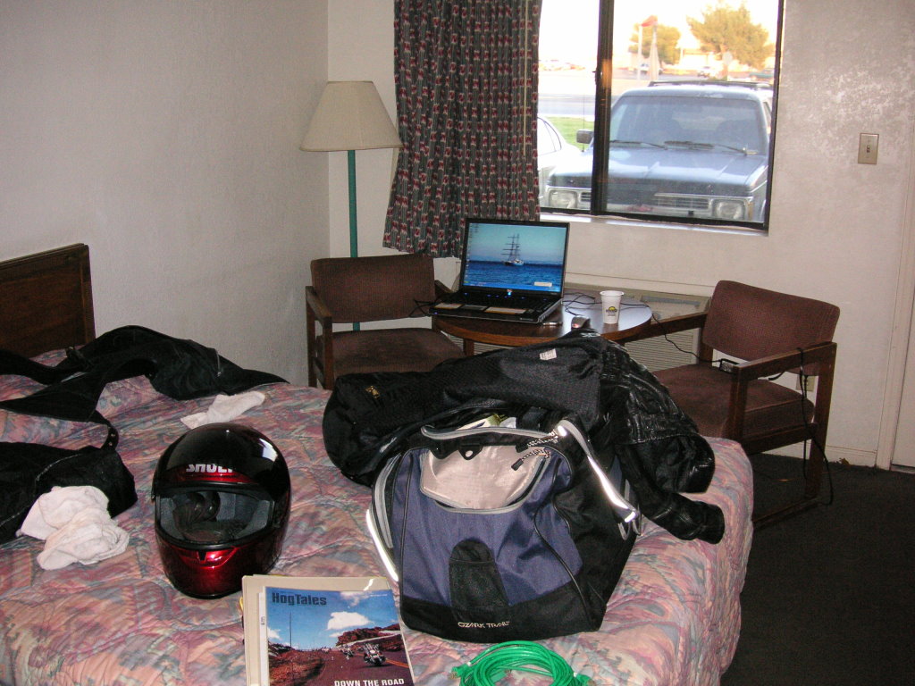 Day's Route Overview: Today I planned on starting from home and to reach Needles, California. I started out down 101 to 152, over to 5 and then down to 46, over to 99, down to Bakersfield. From there 58 and then 40 over to Needles. It was still early so I continued on 40 into Arizona and spent the night in Kingman At this point, about 60 miles ahead of schedule. A planned total of 522 miles for the day. |