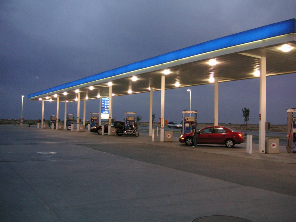 finally came to a Mobil station. Normally, if I don't know how far to the next gas station, I like to fill up closer to 125 miles. There was a really pretty sunset going on as I was gassing up. |