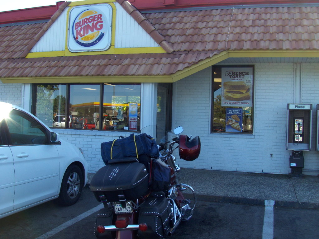 | First stop is at the Cordelia, California Burger King. It is located at the junction of Highways 680 and 80 about 45 miles West of Sacramento. This has become a tradition for me whenever I head this way either by bike or by car. It started way back when I was leading a team working a project for CalTrans in Sacramento and we used to carpool up there. Cordelia seemed like a good distance for a rest stop and bite to eat. |