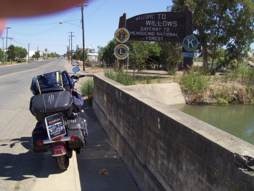 Office, 315 W. Sycamore Street, Willows, Ca 95988. But, on approaching the town, they have a city information totem pole sign that was more interesting. Note the nice photo of my thumb. Look in the photo at the water level in the irrigation canal running under the road. I swear that it looks like the level of the water is higher than the surface of the road.. |