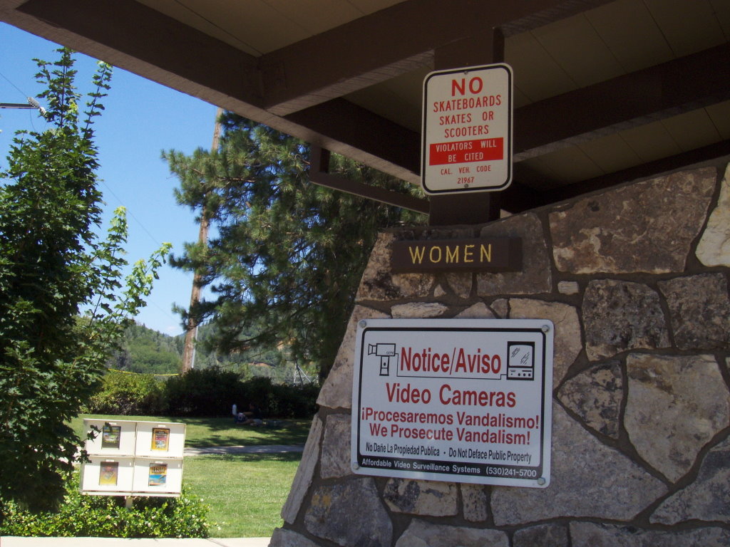 of rest stops were designated I wonder if it is just the women's room that is under video surveillance. And, by the way, no skate boarding allowed in there! |
