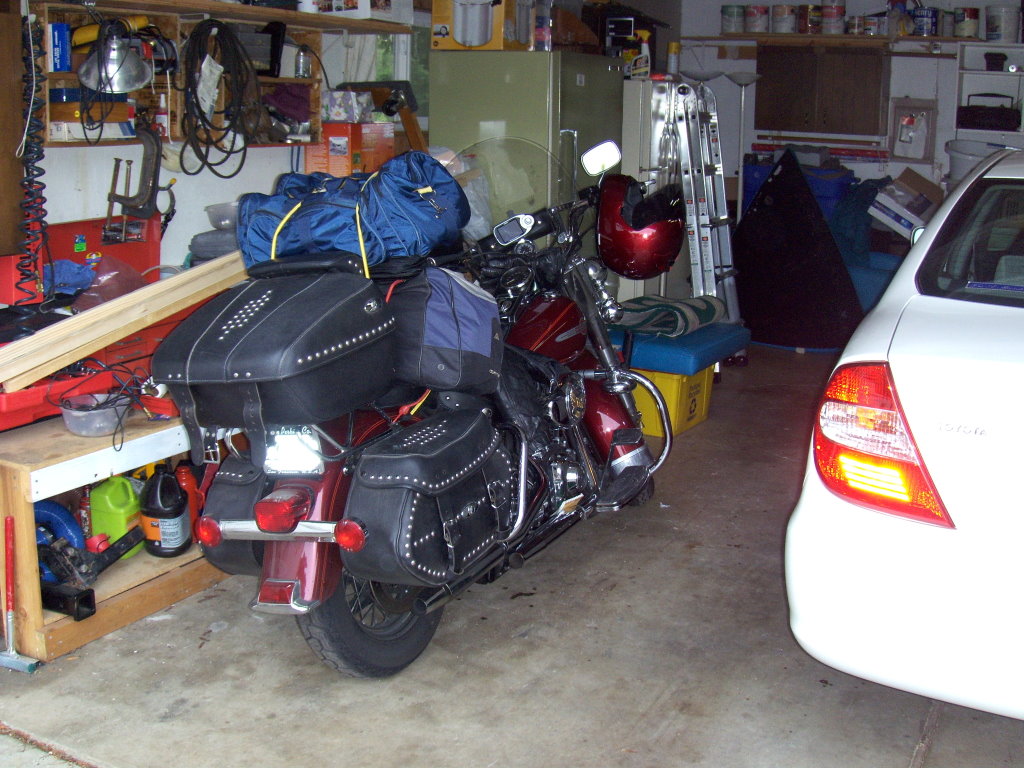 A nice visit with Heidi and Russ, Katy and the kids. And then I'm off. Lola regretfully gives up her nice, cozy garage. |