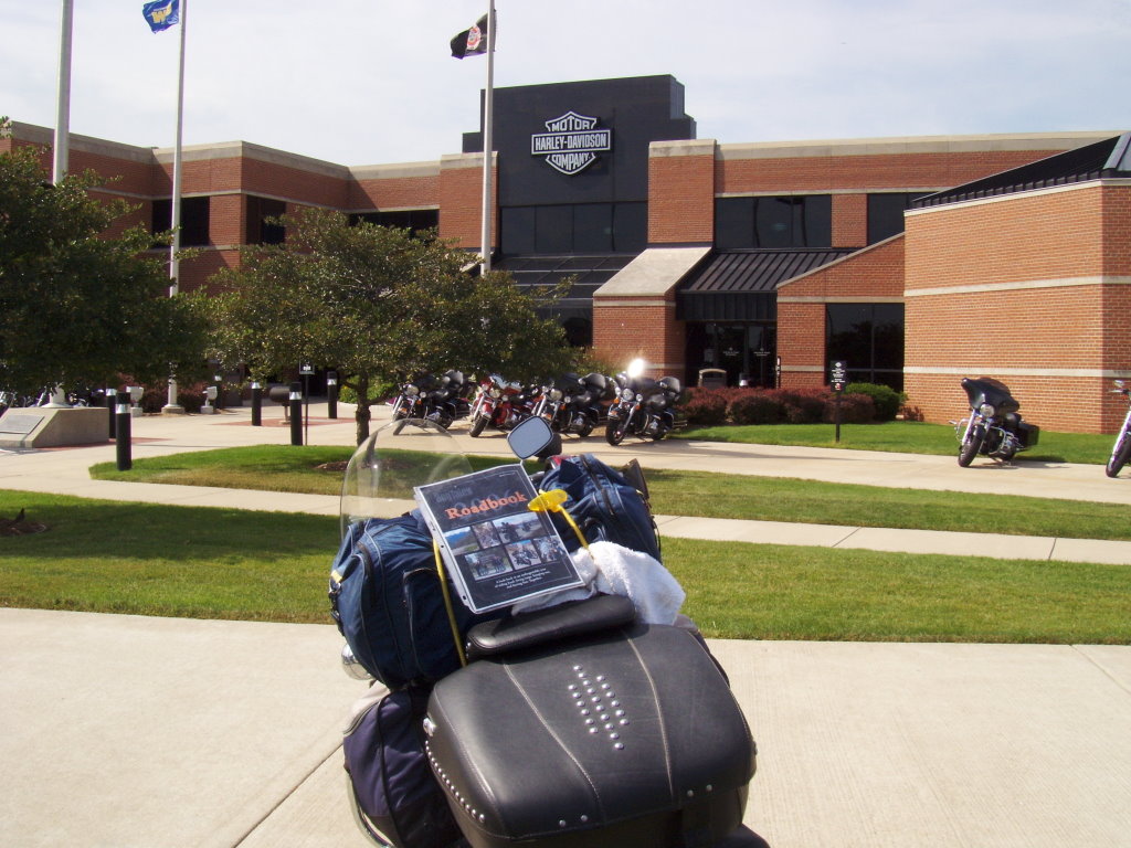 | Day's Route Overview: Today I will be starting out in Wisconsin. This is the birth place of Harley-Davidson. There are several factory locations in Wisconsin, two in Milwaukee. I can get one point each if I can find them and get a photo of Lola in front of them. Planned