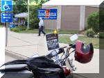 there with about 10 minutes to spare. I was vacillating. Stopping would mean a side trip, but Louisville is where my mother spent part of her childhood so a memento would be very nice. As I approached closer, there was a highway sign that said that I-64 West through the city was closed. Detour on 264. This put me out of reach of the dealer. Look at the map. I-64 would mean going from I-71 from the north-east to the north west, skirting along the north side of Louisville. On the other hand, I-264 meant that I had to go down the east side of the city, across the south side and then back up the west side, about three times as far. Not only that, but the exchange between I-264 and I-64 in the north-west corner is designed to handle a relatively low volume of traffic. The traffic that normally travels I-64 is three full lanes with a large number of big-rigs. The interchange I went through narrows down to one lane. There was five miles where everything was stop and move an inch and stop again. This with it being in the mid nineties and the sun bearing down and the humidity very high. Neither Lola nor I enjoyed this very much. My skin glowed with a healthy dew. No, more like I was sweating like a pig! Were this California, it is legal for me to ride between lanes and advance. In almost no other state is this allowed. After an eternity, I got onto I-64 heading west and started to move at highway speeds. I was soaked and sticky. To add to the irony of it all, one of the signs I saw first on 64 said "Caution, bridge may be icy." Now, I suppose that is sage advice during some parts of the year, but it seemed a bit silly at the time. |