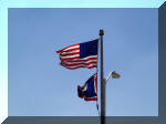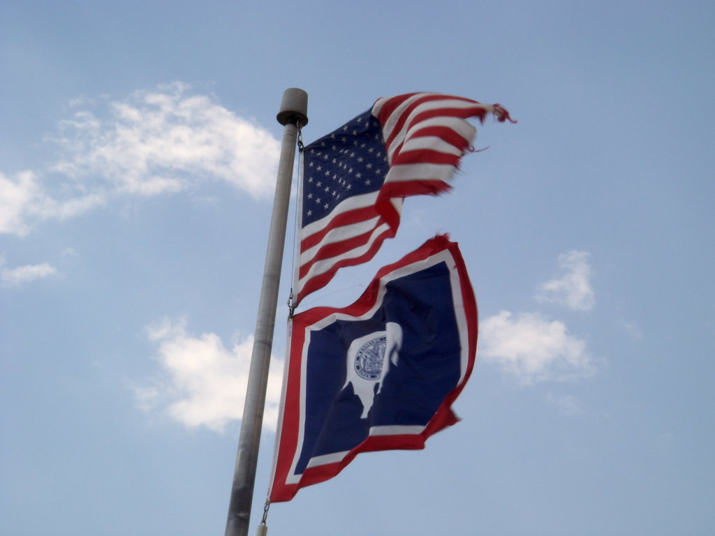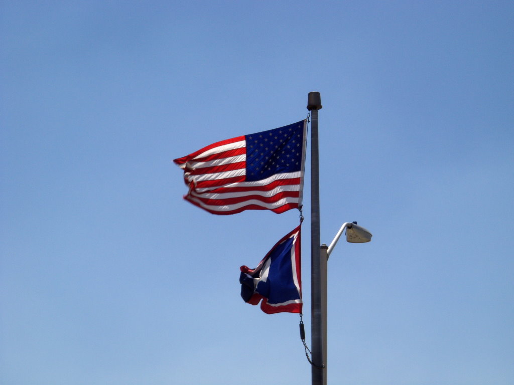 head wind. The rest stops had little nature lessons on message boards. One spoke of the wind. Note the flags stretched full out and flapping hard. |