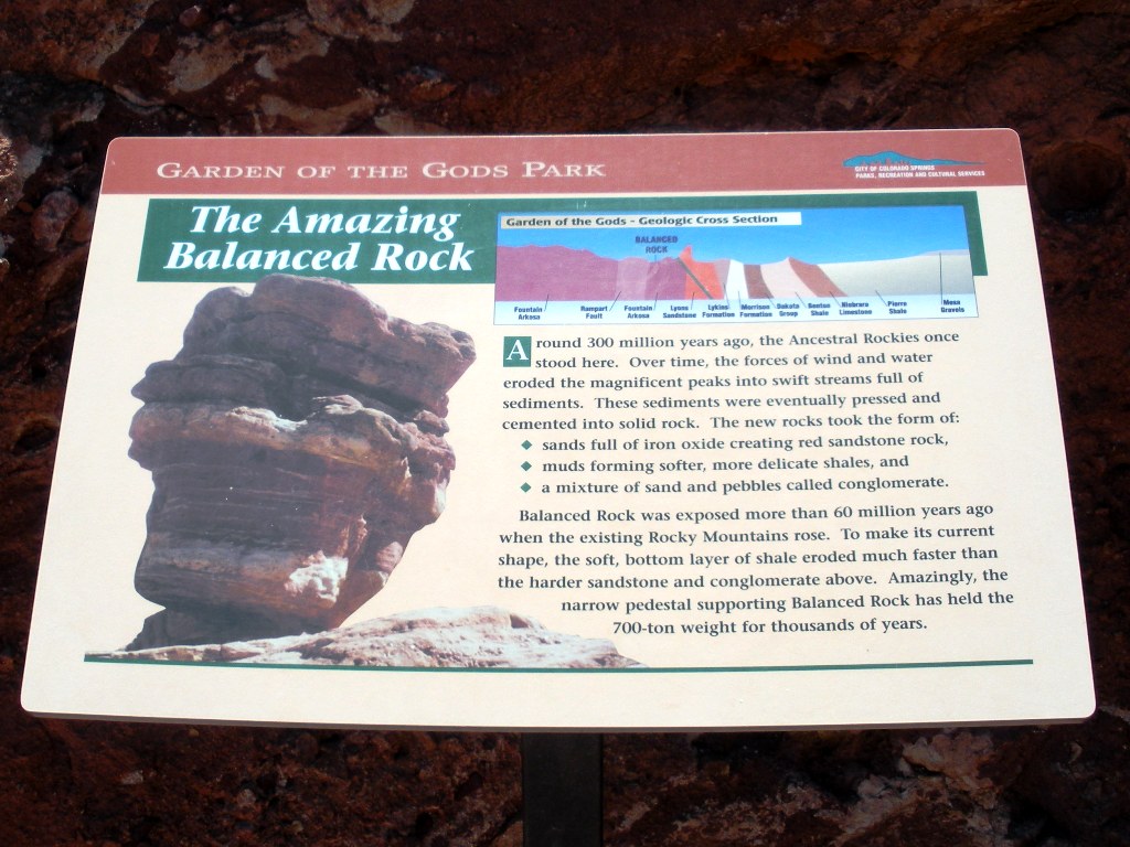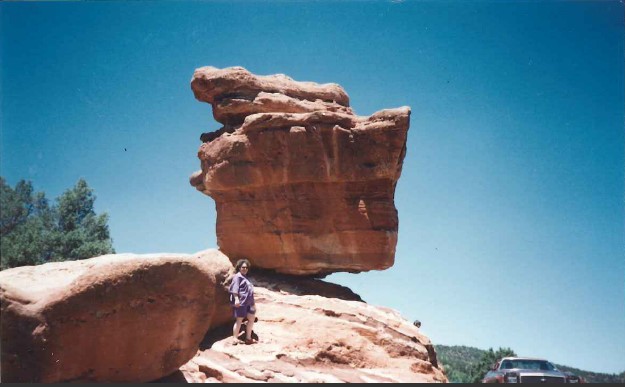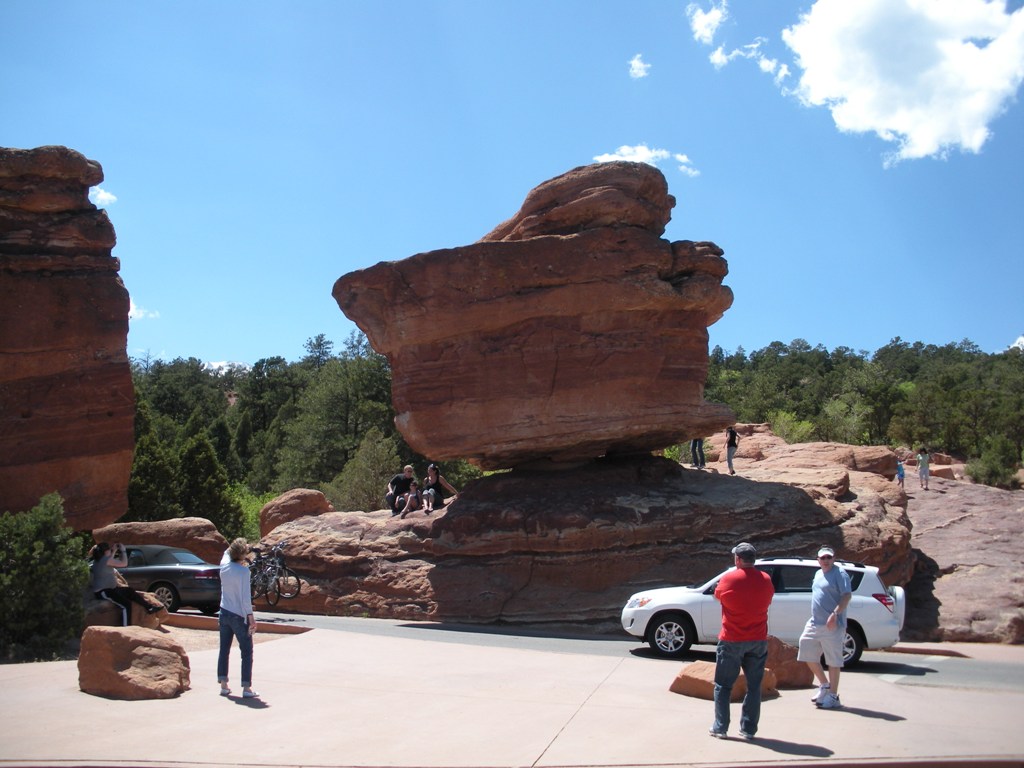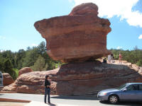 On the south side of Colorado Springs is a park, Garden of the Gods In this park is a geological feature of a balancing rock. My mother's father and two brothers visited balancing rock in 1918. We have a photo of them with the mule they rode in on. My sister and nieces visited the same rock a few years ago. So, naturally, I had to stop by when in the general area. There are people constantly teeming all over the place. Most want to have a photo of them "balancing" the rock.