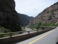 The canyon is so narrow for a few miles that they built the Interstate one on top of the other.
