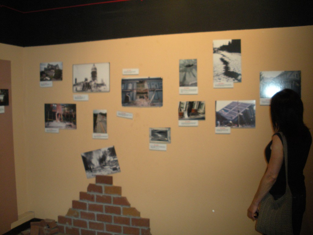 On the walls of this display were photos of recent large earthquakes.