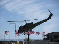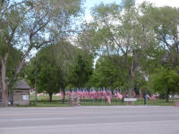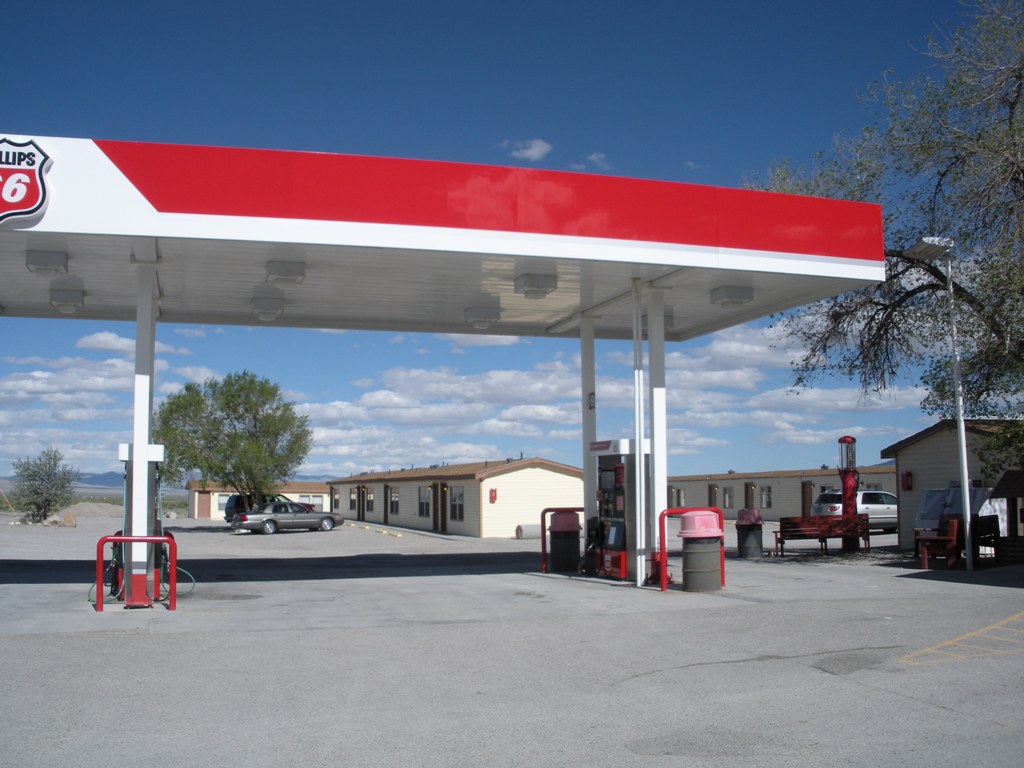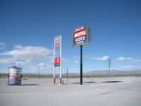 We stopped in Salina, Utah and had lunch at a place called Moms Cafe. It was unusually busy, crowded with people. We shared a table with a couple who turned out to be from Delta, Utah, our next destination. The food was good and the company pleasant. Delta, Utah is the last opportunity to stop before our longest road segment of the trip. We were also reminded that it was now the Memorial Day weekend. Across the street from the flags was a restaurant with the best cherry pie C and I can ever remember tasting. We steeled ourselves for the longest segment (154 miles) of the entire adventure. An unexpected pleasant surprise. As we hit the Utah - Nevada state line, we came upon a gas station and motel in the middle of nowhere. There is no town near and the only possible customers were we travelors or some widely scattered local rural denizens. By the time we reached Ely, Nevada, we were exhausted. No energy to take photos. Now, of course, we wish we had taken a bunch. We had coffee and a bite in the second floor of a casino/restaurant/hotel. We experienced strong reminders that the smoking laws of other states are not so strong as California. |