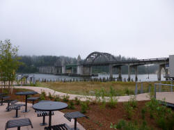 It is not a secret, but it rains a lot in Oregon Lots of rain means lots of water Lots of water needs a place to go, hence lots of rivers and therefore lots of bridges Center: McCullough Memorial Bridge over Coos Bay, JNO North Bend, Oregon |