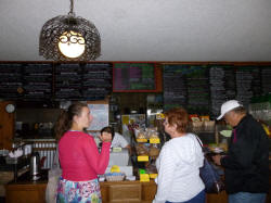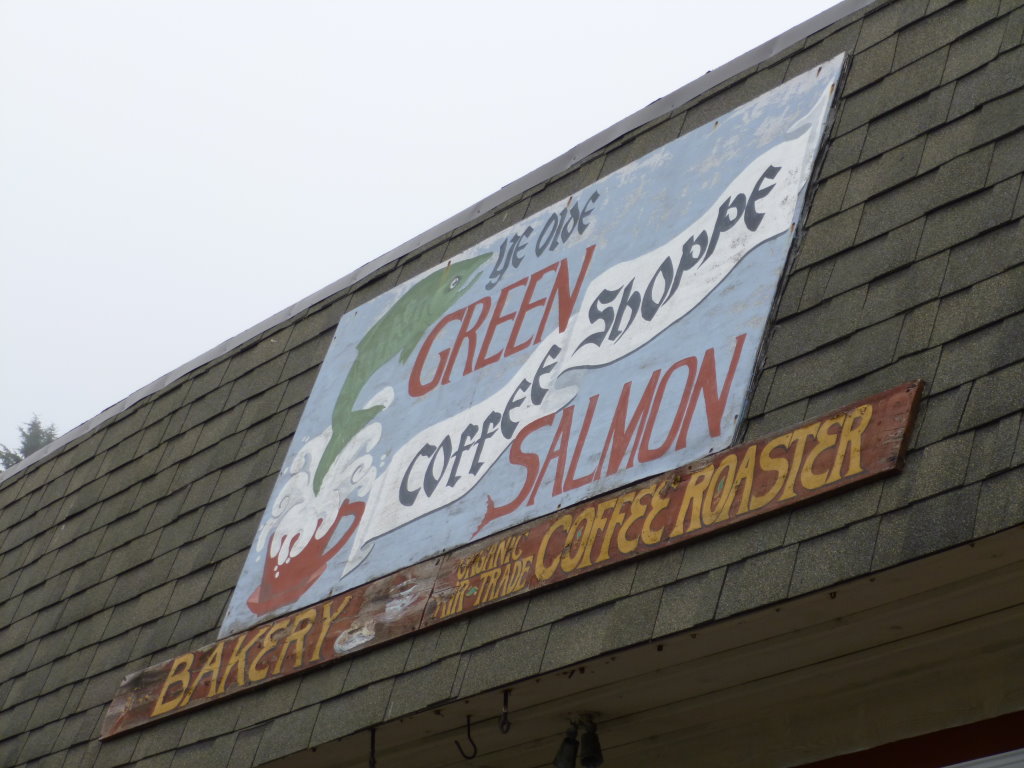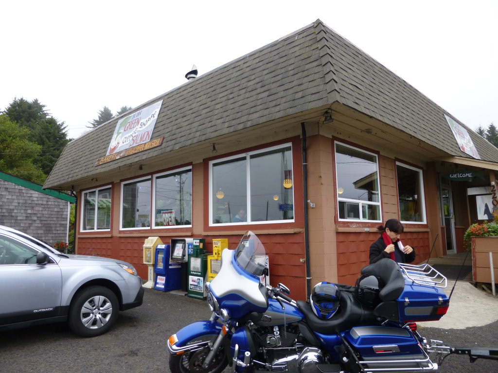Yachats We stopped to have breakfast here just 24 miles up the road. We had visited Yachats about 2 years ago and found this place. listed on the chalk board. Not too crowded when we got there, but as we ate, many locals came in and they got very, very busy I had a bagel with some locally smoked lox, onion, tomato, capers, and herb cream cheese Carol had warm cereal with local blueberries. Look at the size of their standard tea cup. Leaving Yachats and throughout the rest