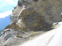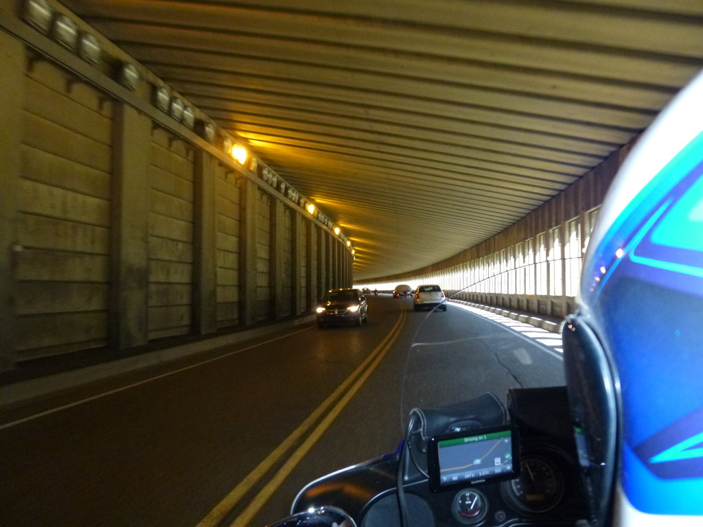 Golden (B) has two exits off the highway. Of course, there is no sign saying that. As we approached, we were trying to spot the Days Inn Golden Also I was fumbling with the GPS trying to find the place Realizing that we passed the second (and last) exit We looked for a place to turn around. It turns out that there are no off ramps for many miles because the highway is cut out of the side of a huge cliff. We went about 6-7 miles till we finally found a turnout we could use. The Days Inn has so recently changed hands and names that the GPS listed it by an entirely different name.