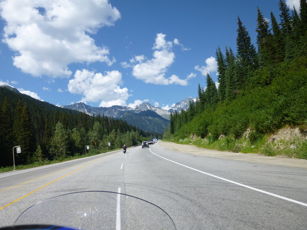 Kamloops is one of the most enjoyable highways I have ever ridden. Four lanes, divided, very well maintained, one can make good time. On the other hand, upon leaving Kamloops heading east, it becomes frustratingly difficult. Very little four-lane, but very heavily used by us tourists. One slow car can build a line of 20-30 cars behind it with no chance to pass. Very slow, very frustrating. Seldom hitting the
