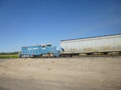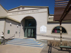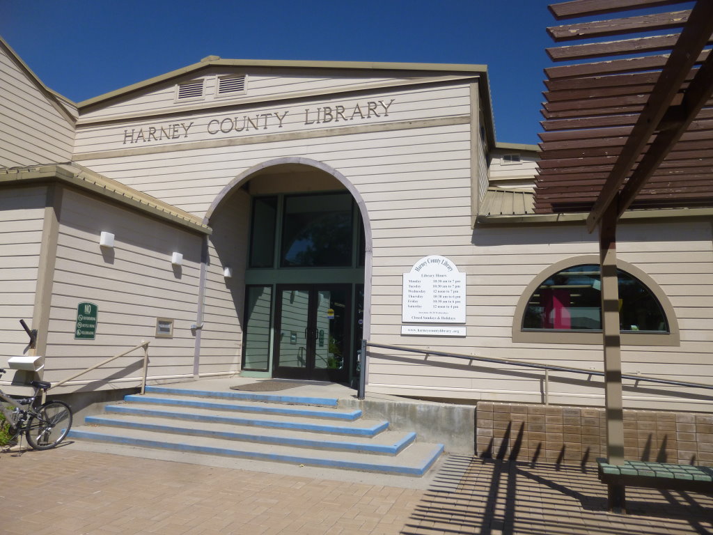 Oregon is blessed with many mountain ridges We went over several ridges some of which are over 4,000 feet. Often following the route of beautiful rivers. Often also little valleys with rich farms The grain trains here are not nearly so long as in Idaho or Montana Heading west, the next stop was Juntura (B) For a little town of around 200, this is the third year we have visited. Who would have thought?! We were also here in 2011 and 2012 We always stop at the Oasis Cafe and Hotel for a little bite There is a bus line that originates in Bend and runs as far east as Juntura Juntura has what must be one of the smallest post offices in America |