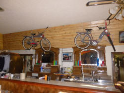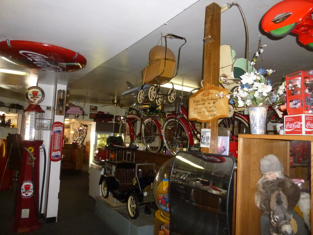 After settling into our motel, we headed out to dinner Carol wanted to try a place called Ye Olde Castle Family Restaurant based on Yelp reviews The owners are an older couple who are tired of running the restaurant They called upon a friend, Ken, to manage the place. What Ken found was a wonderous collection of toys and memorabilia For example, there were about 30 bicycles, each in perfect shape several as pairs of identical his and hers types Going to Burns and not stopping in here certainly is missing a good thing. And, the food, good old home cooking is very good |