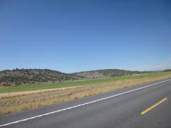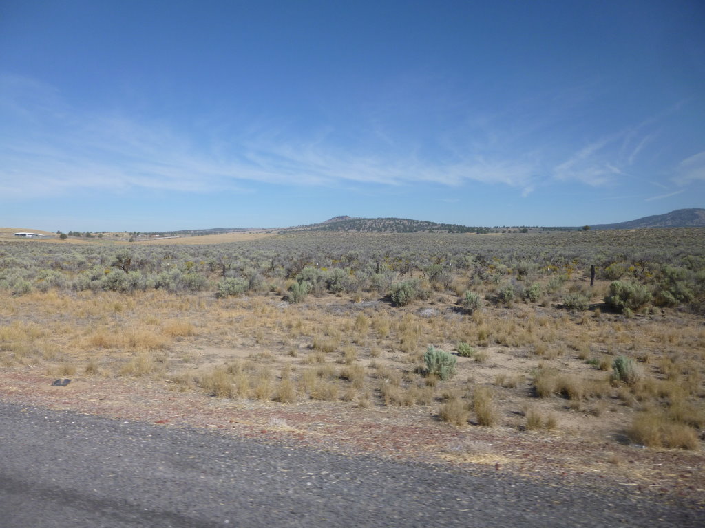 Burns (A) there were a few rich farmlands but mostly high desert Mile and miles of high desert. How high? Up to 4,700 feet, no lower than 3,500 feet. At some points side roads went off to ranches, at other points, seemingly nowhere |