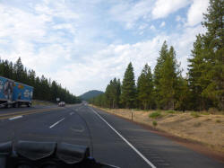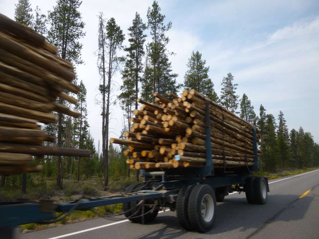 Bend (A) The road is good, surrounded by pines There must have been a time when volcanoes in Oregon were everywhere We saw many logging trucks with large loads. To me it seems strange. I am from redwood country and there 3-4 logs fill a truck. |