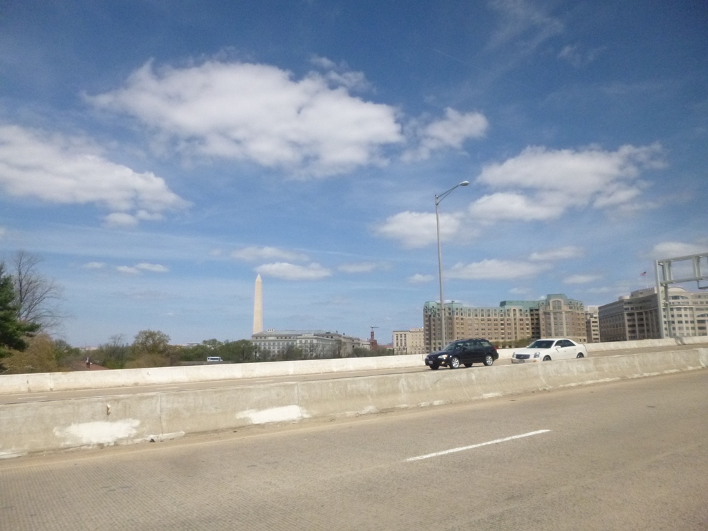 From Falls Church to Maryland, the quickest way might be to swing around the beltline, but going through the district is more picturesque There were three tall pointy things along the way I had never seen them before, I will have to look them up |