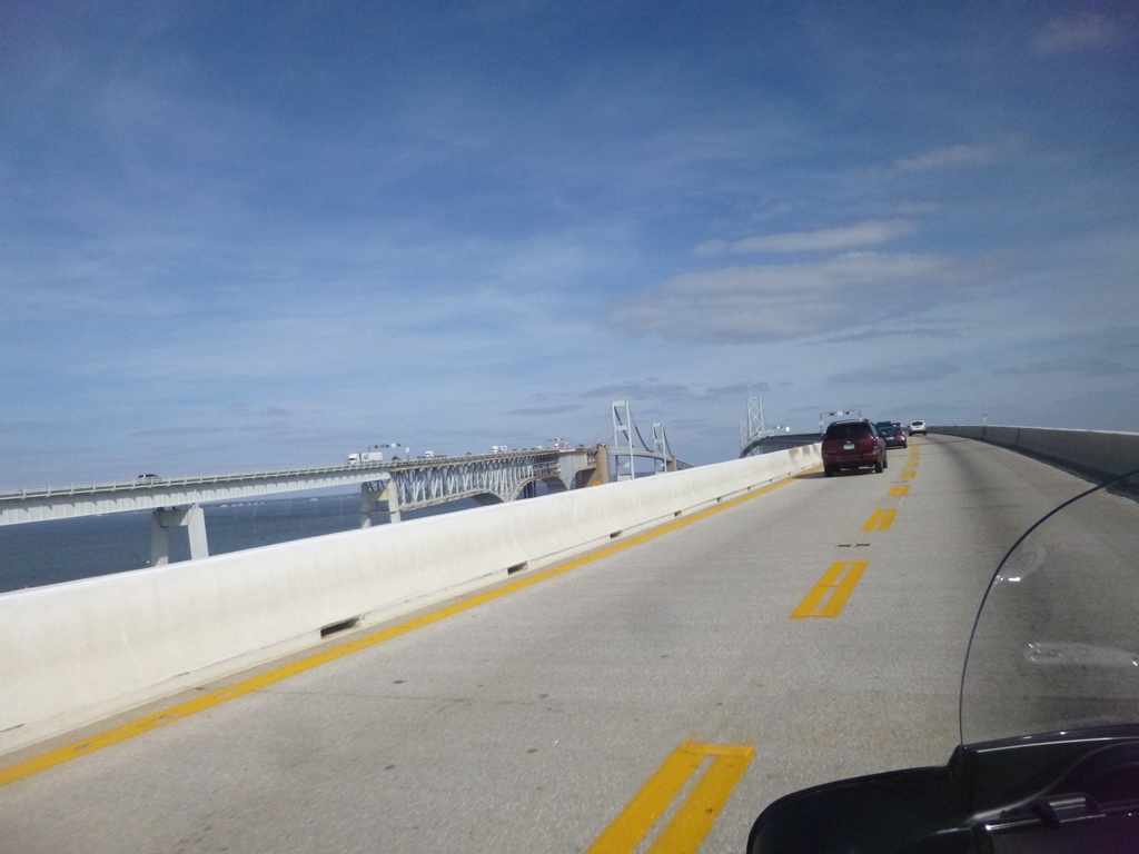 There are two identical bridges that cross Chesapeake Bay Each is two lanes. During commute times, they have three lanes going one way and one the other. So one bridge has traffic going east or west in both lanes and the other is two-way. The lanes are rather narrow so I'm glad we picked the one-way span. Kent Island was originally settled in 1631 |