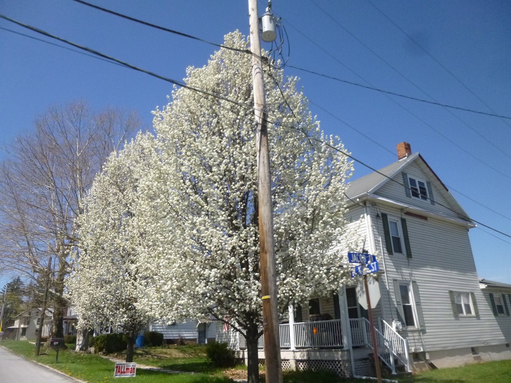 We hit the road Many of the trees are in full bloom. Often we are cascaded with a snow of white blossoms. |
