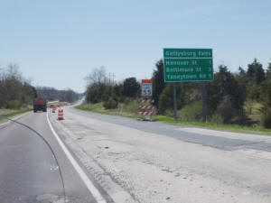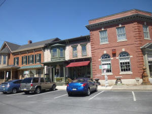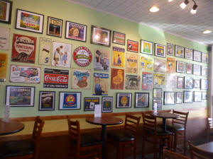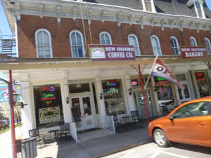 Our route took us through a lot of little towns. Stopped in one, New Oxford,for a bite in a little cafe On the side walls there were many tin plaques and framed little posters Many of the frames held fruit-box end labels from California The center of New Oxford is a round-about. Two highways converge. New Oxford has several buildings from the 1700's. Seems strange now to call it "new". |