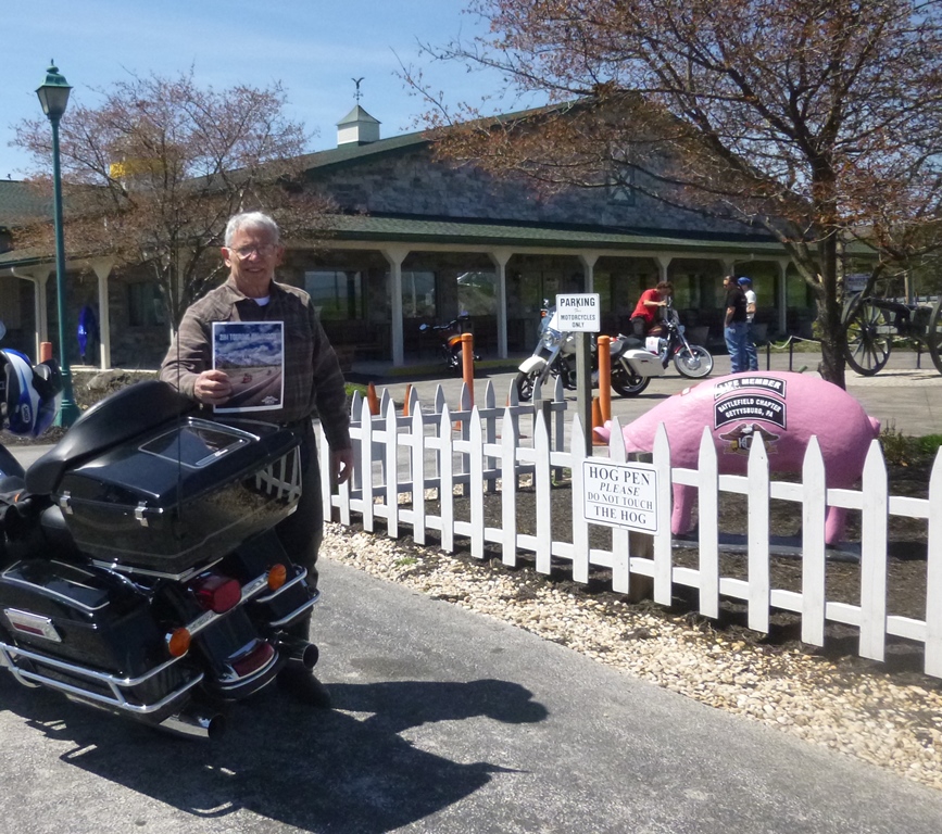 M & S Harley-Davidson So much history around in Pennsylvania. This is the 150th year anniversary of the burning of Chambersburg during the Civil War. They have a commemorative t-shirt for the event and now I do too. The bike is a little squirrelly sometimes and I had been wondering if the tire pressures were right Harley dealers take special care of bikers who are traveling. They checked the tires and I also had them pump up the air shocks. It seemed to ride better after that. |